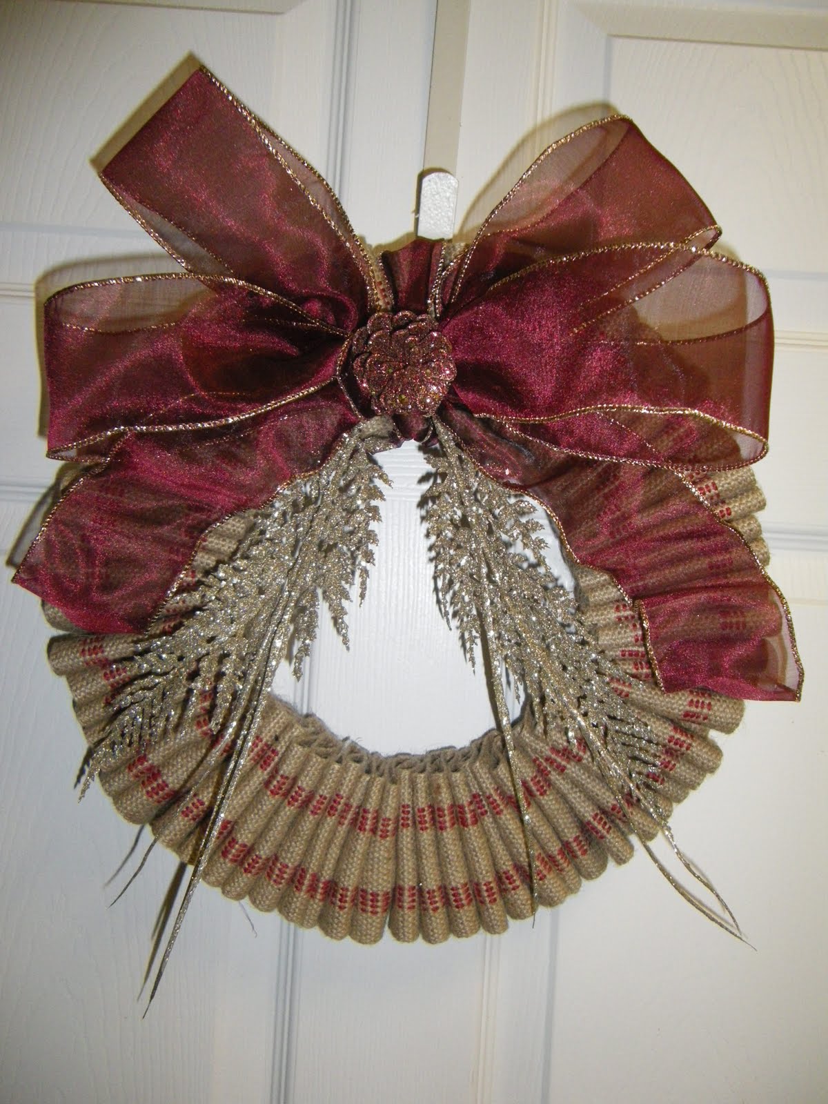 | I love spray paint!!! These are faux leaves that I glued on a straw wreath and spray painted. Oh, YES!!! Now is just change the ribbon, embellishment and you'll get a new look, any time!! |